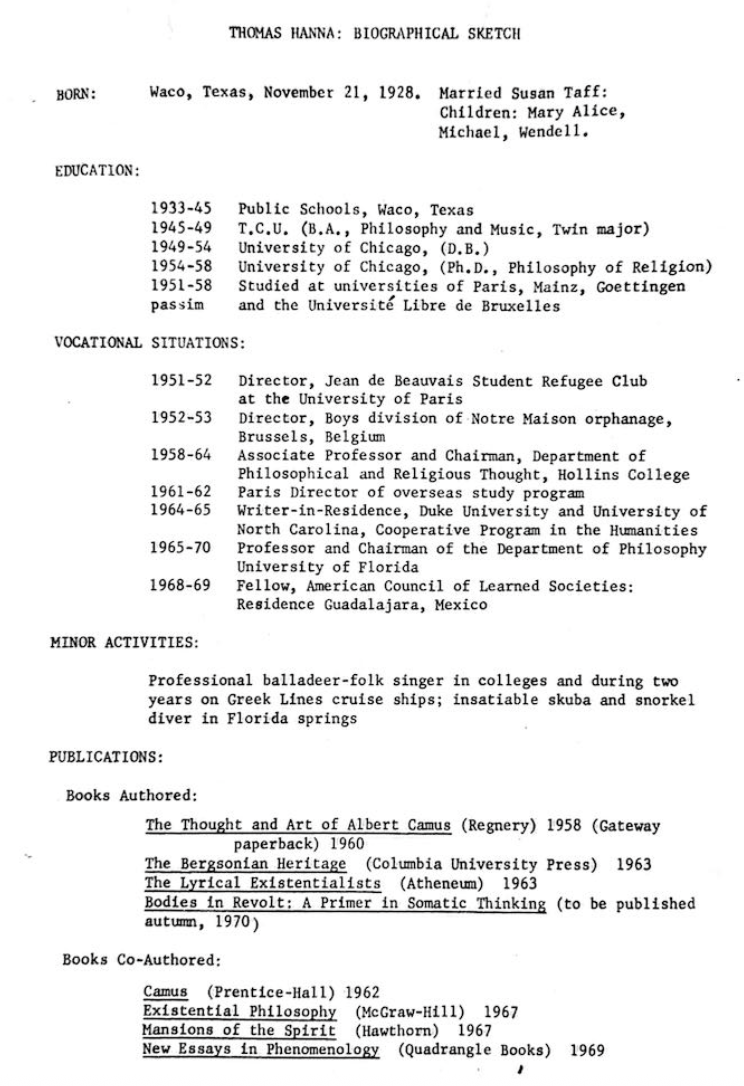 Thomas Hanna- A Biography in his Own Words (1976)